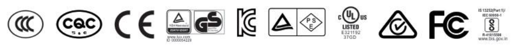 GB17625.1-2012,GB/T9254- 2008,GB/T13837-2012,GB/T17625.1-2007,GB4343.1-2018,EN55032,EN55035, EN55014,EN61000,KN-32/35,FCC Part15