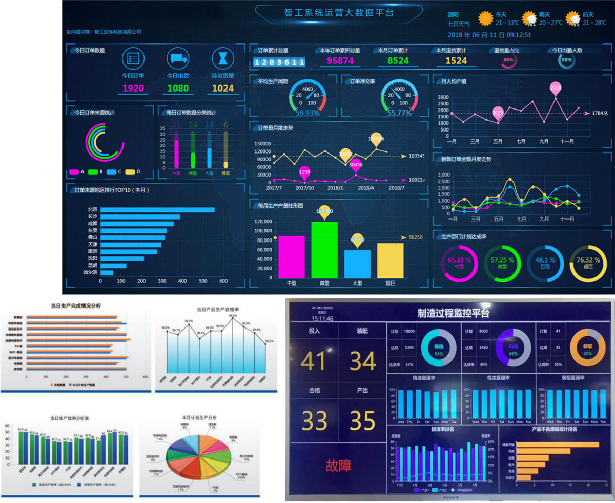 The production electronic billboard includes: operating a big data platform, monitoring of abnormal production site status and seeking help information, monitoring of manufacturing process data analysis charts, equipment monitoring, notification announcements and other functions, data realization, real-time monitoring of the entire manufacturing process of the production line.